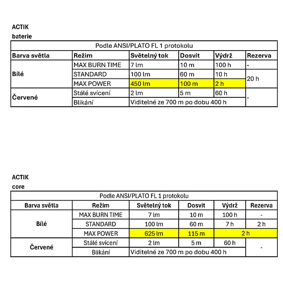 - ACTIK CORE se dodává s dobíjecím akumulátorem CORE a funguje také se třemi standardními bateriemi AAA/LR03 (nejsou součástí balení), svítilna automaticky rozpozná typ zdroje a upravuje světelný výstup