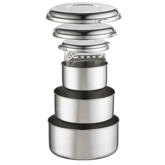 Alpine 4 souprava je vyrobena z neuvěřitelně odolné nerezové oceli, spolehlivé i v těch nejextrémnějších podmínkách. Je ideální pro náročné a časté používání. Každá nádoba má vlastní víko, které zároveň slouží jako talíř.Celou sadu lze složit do největšího hrnce.