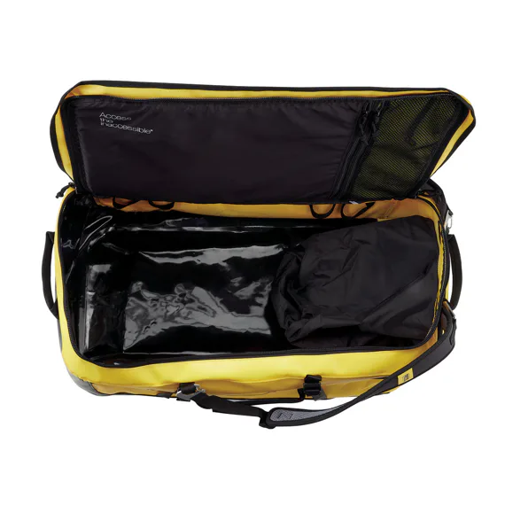 DUFFEL 65 je pohodlná, ergonomická taška s objemem 65 litrů, navržená pro přenášení několika způsoby. Záda a ramenní popruhy jsou polstrované pro pohodlí při použití jako batoh. Velký vstupní otvor umožňuje snadný přístup k vybavení, včetně dvou kapes ve vnitřní klopě a velké boční kapsy na přilbu nebo obuv. Velká průhledná plocha umožňuje rychlou identifikaci. Taška je vyrobena z pevného materiálu TPU pro intenzivní používání. Vyrábí se ve dvou barvách: žlutá a černá.