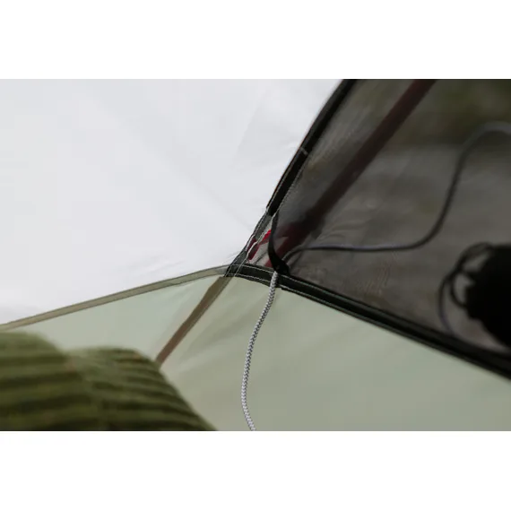 Skutečně obdélníkový půdorys a prostorný interiér bez problémů pojme moderní širokou karimatku; unikátní geometrie prutů zajišťuje výjimečnou výšku stropu (1,04 m).