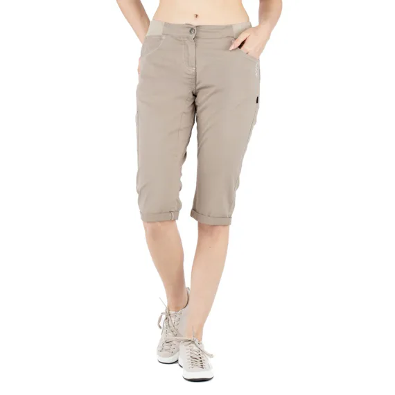 Pravděpodobně nejodolnější dámské 3/4 kalhoty z modelové řady Chillaz. Volnost pohybu zajišťuje strečový materiál, uvolněný střih a vložený klín. Elastický pas se stahovací šňůrkou zajišťuje, že vám dokonale padnou.
