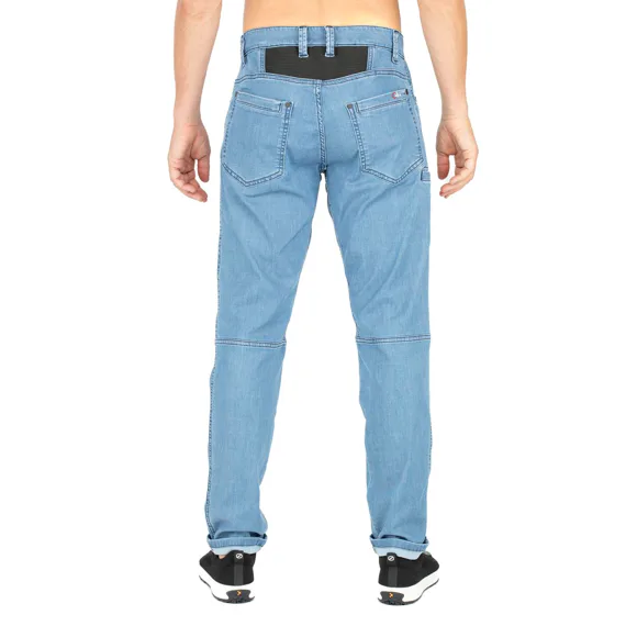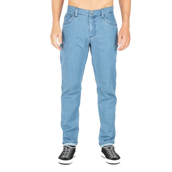 Moderní kalhoty pro široké použití - od lezení přes fitness až po dlouhé procházky. Džínovina se musí velmi dobře natahovat a být tak příjemná, jak jste u Chillazu zvyklí, i když o něco silnější a odolnější. Kalhoty mají elastický klín a vzadu vám nabíraná látka zakryje bedra, když se při lezení ohýbáte.