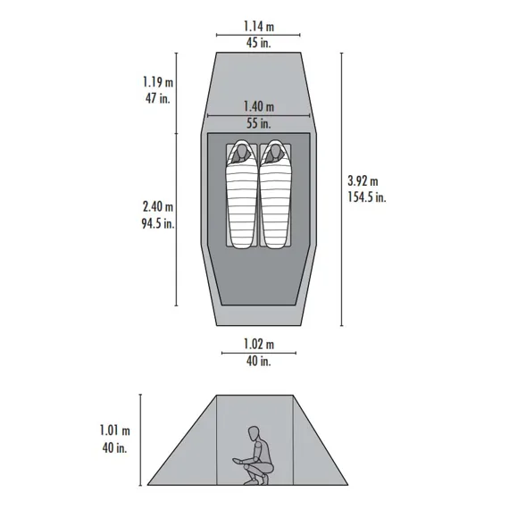 | Půdorys vnitřního stanu | 2,34 x 1,4 m |