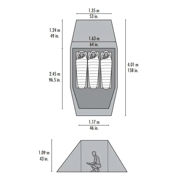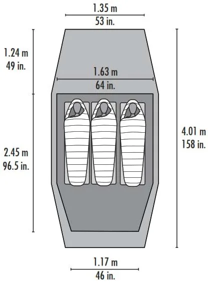 | Půdorys vnitřního stanu | 2,34 x 1,65 m |